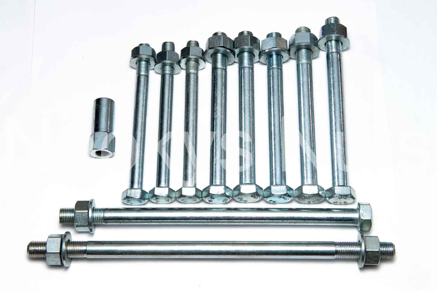 10 studs complete with nuts and washers. Bright zinc plated. |